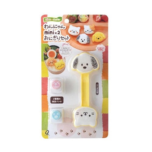 簡単手軽にいぬとねこの一口おにぎり!1つあたり約20gのひとくちおにぎりが2種類握れるおにぎり型と、食材カッター、海苔パンチのセットです。 |
