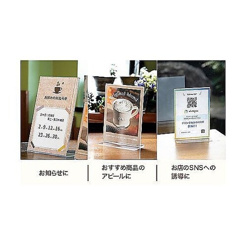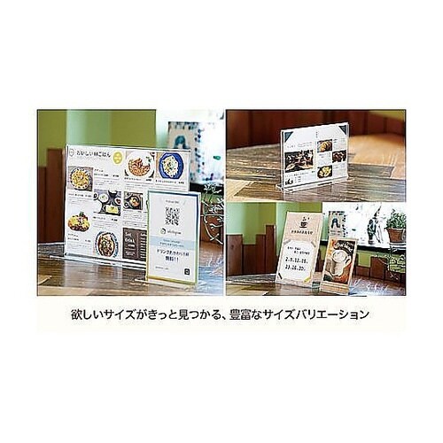 片面用スタンドアクリル製なので透明度がよく、ショックに強いです。各種案内板に最適 中身を鮮やかに見せるサインスタンド カウンター席やレジ近くなどのスペースにも置きやすいスリムなスタンド。 |