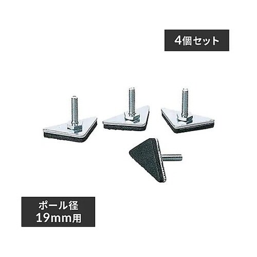 ポール径φ19mmメタルラック用オプション品メタルミニ専用の別売三角アジャスター4個入りです。ポールの下部に取り付けて高さを微調整することで、ラックのぐらつきを軽減します。 |