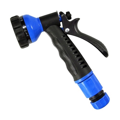 お庭などへの散水。エクステリアの掃除。洗車などに。樹脂ボディで軽量。ゴムグリップに滑りにくく、細かいリブが手にフィットする形状なので握りやすい。 |