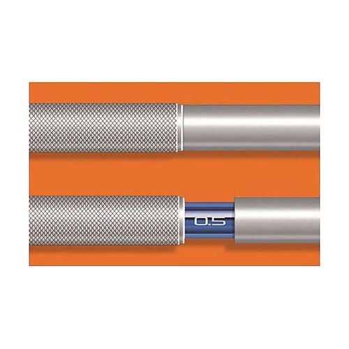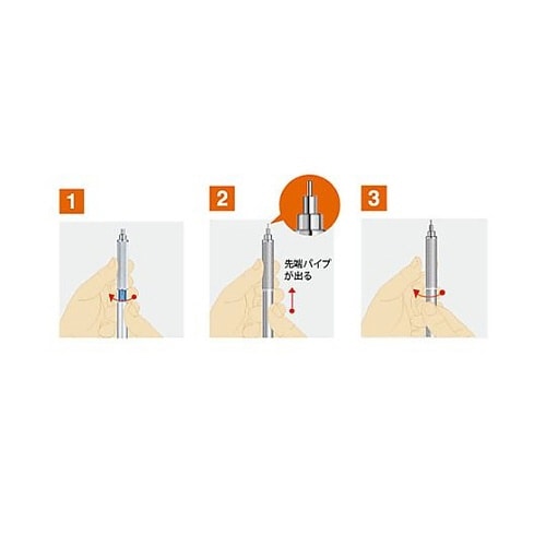 本格派製図系シャープロング先端パイプ、金属を削りだしたローレット加工グリップ、メタルクリップなど、製図用シャープとしての特長に加え、ON/OFFの切り替えを可能とするシフト機構を搭載しました。 |