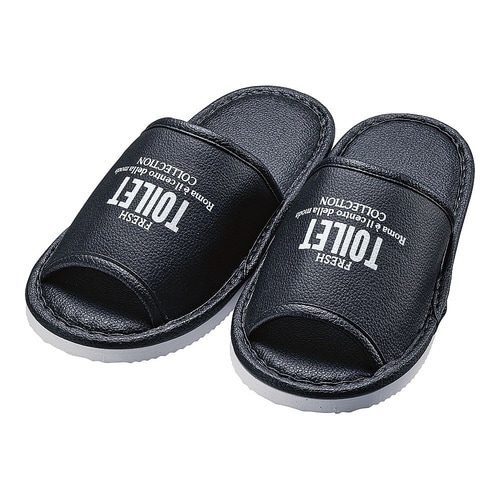 ビニールレザーのトイレ専用スリッパ。ゆったり幅広で履きやすい。厚めのEVAビニール底材を使用。汚れてもサッと拭けて清潔です。 |