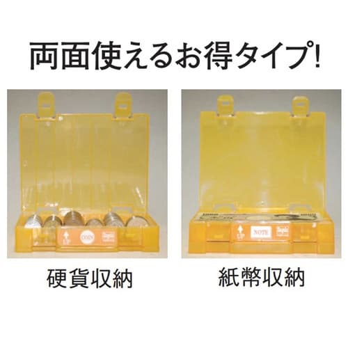 両面使えるお得タイプ!硬貨は硬貨面に、紙幣は紙幣面にそれぞれ収納できます。簡易的なレジとして、店舗、フリーマーケットに!硬貨収納面には各金種10枚毎に最高50枚収納できます。 |