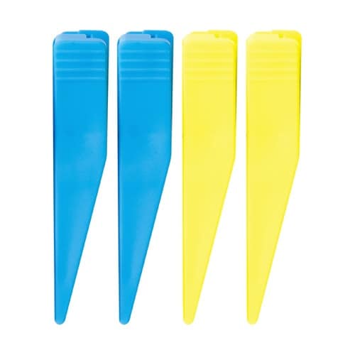 着脱が簡単な標尺クリップです。ゴムがなくても強く挟め、位置決めの突起でまっすぐに取り付けられる特殊形状になっています。 |