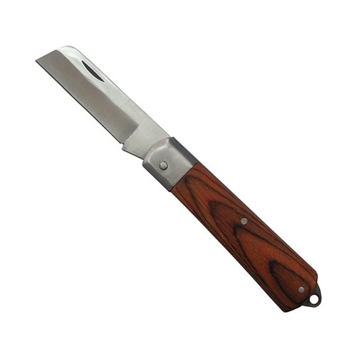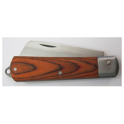 携帯や収納に便利な折りたたみ式電工ナイフです。刃にはステンレス鋼材を使用しており、錆びにくくなっています。 |