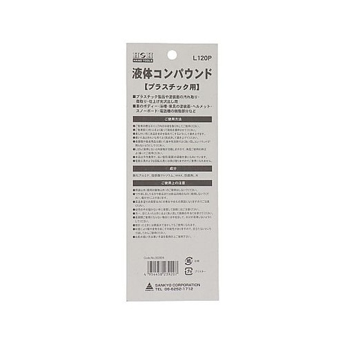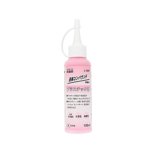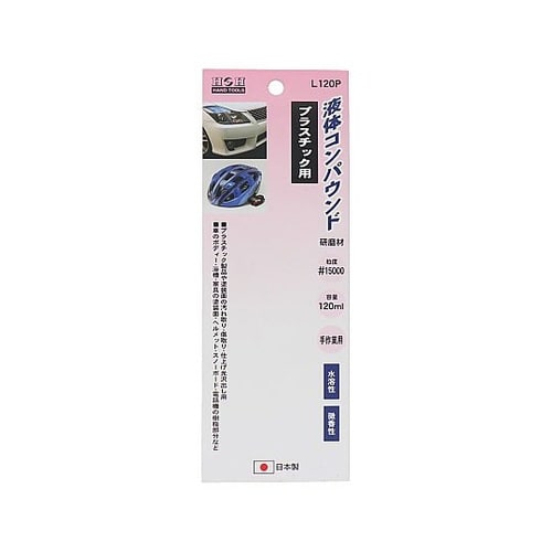 液体のコンパウンド(研磨材)。プラスチック製品や塗装面の汚れ取り・傷取り・仕上げ光沢出し用。 |