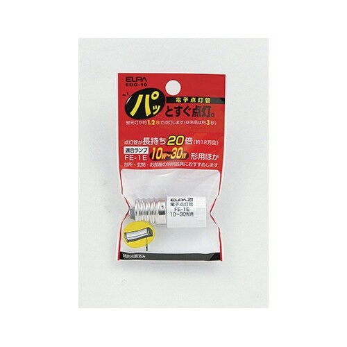 電子点灯管10ー30W用パッとすぐ点灯。従来の点灯管に比べ平均点灯所要時間は半分以下の約1.2秒、操作回数は約20倍の120,000回以上。 |