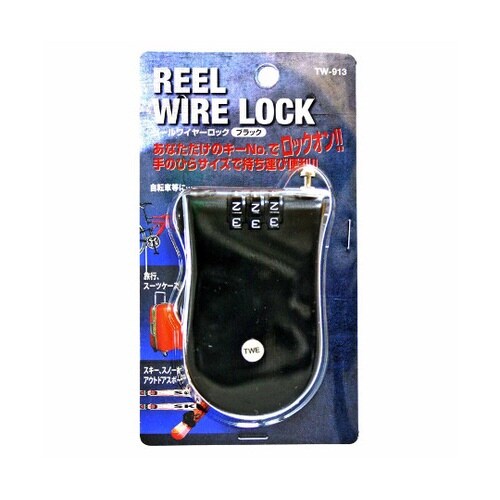 番号可変式 リールワイヤーロック ブラック 本体縦幅85mm×本体横幅55mm TW−913