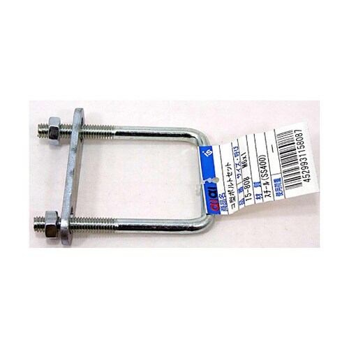 コ型ボルトナットにプレートがセットされているので様々な物を固定できます。パイプ・角材の固定に。壁面・床面・地面への固定金具として。 |