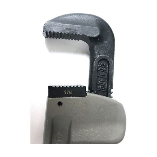 アルミ合金で軽量のため作業効率がアップします。握りやすく滑りにくいグリップ付です。使いやすい目盛り表示付です。ガス・水道管などの締付け、解体作業に。 |