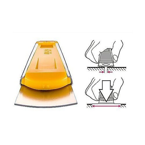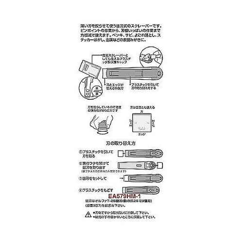 薄い刃を反らせて使う替刃式のスクレーパーです。刃とエッジが使える特製刃です。3辺がエッジ、1辺のみ刃が付いています。 |