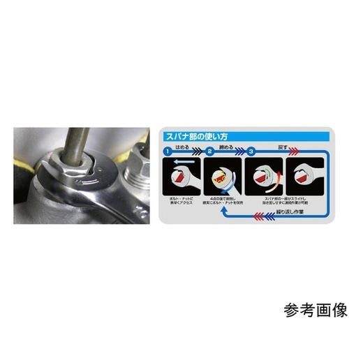スパナ部が抜差し不要で早回し操作が可能です。配管のフレアナットや狭い場所での締付け作業に最適です。ボルト・ナットの締付け作業に。 |
