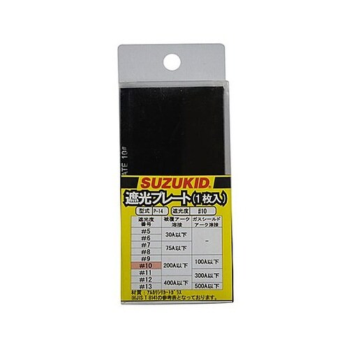 被覆アーク溶接/200A以下、ガスシールドアーク溶接/100A以下の溶接作業に使用できます。アーク溶接時の強い光を遮光、目の保護をするプレートです。 |
