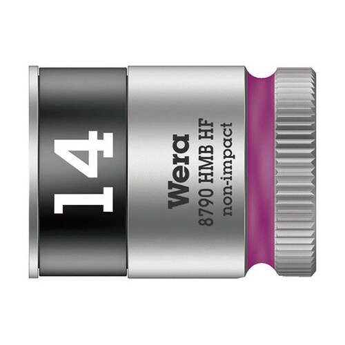 各サイズが色で分けられているため、サイズを簡単に選べます。ホールディングファンクション(HF)により、ボルトやナットを着磁機能なしで保持できます。クロムメッキ仕上げです。 |