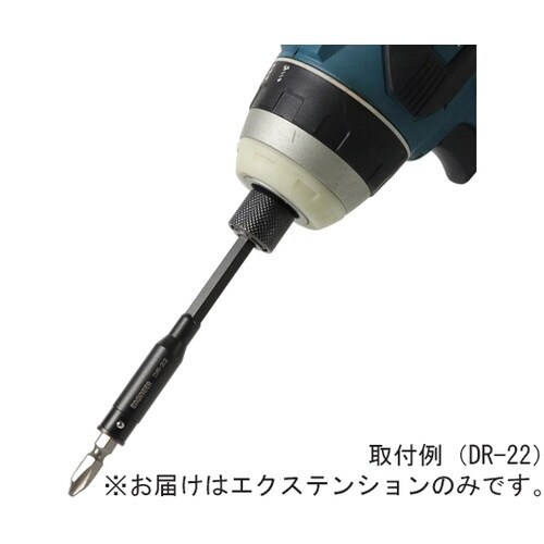 貫通ドライバーなどに取り付けて叩いて使える、タフネス構造のエクステンションバー。電動インパクト18Vに対応。スリムヘッドで狭い場所での使用に便利。対辺6.35mmの六角軸ビットやドリルの延長に。 |