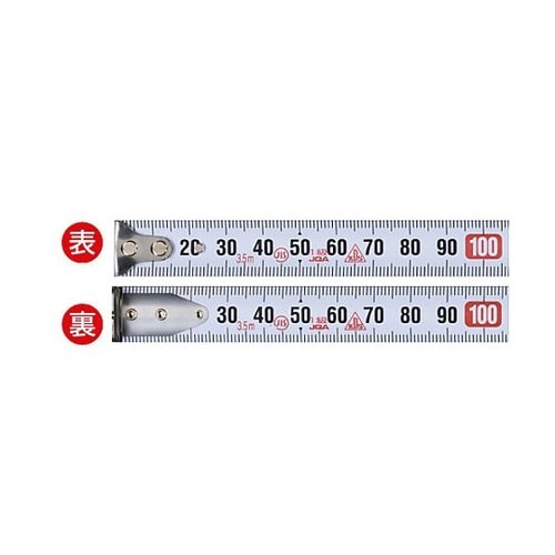 JIS1級品両面目盛付デュラコート仕様の為、10倍以上長持ちします(メーカー比)読み取り間違いの少ないミリ数字目盛テープ引出し頻度の多い方に最適です。耐摩耗性に優れています。 |