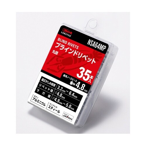 ブラインドリベット(丸頭)/NSAアルミニウムボディスティールマンドレル保管に便利な樹脂ケース入り片側から複数の母材をワン・アクションで締結できます。標準的な形状で、サイズ、材質も豊富にあります。 |