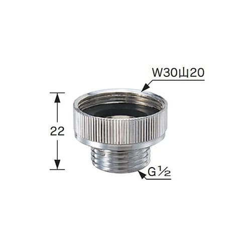 W30山20ネジ(自在水栓、混合栓の大口径回転パイプ)をG1/2ネジに変換するアダプターホースカップリングや、G1/2接続部品が使用可能になります。 |