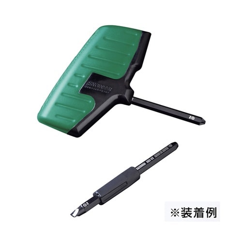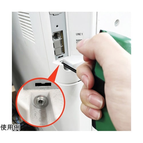潰れた皿ネジやキャップボルトなどを緩めることができるネジバズーカ、ネジモグラの専用グリップ。押し付けやすいエルゴノミクスデザインのグリップにより、カムアウト(ドライバーの浮き上がり)を防止します。 |