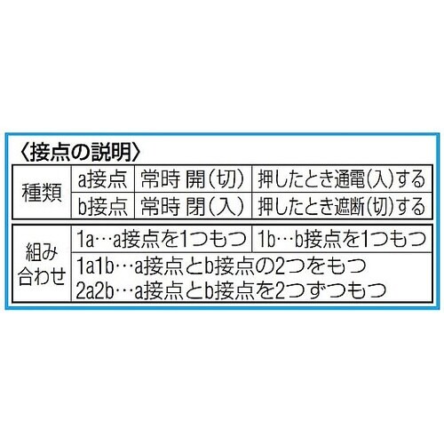 プッシュロックリターン型(ボタンを押すとその状態でロックされ、ボタンを右に回すとリセットされます。 |