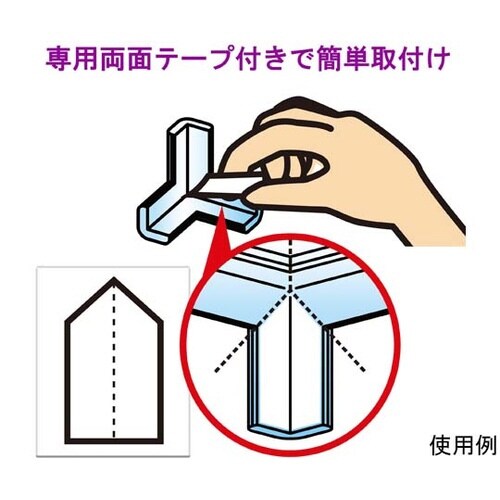 角にぶつかった時の衝撃をやわらげます。角を三方向からカバーできます。クリアタイプなので、透明で目立ちにくいです。専用両面テープ入りで簡単に取付られます。 |