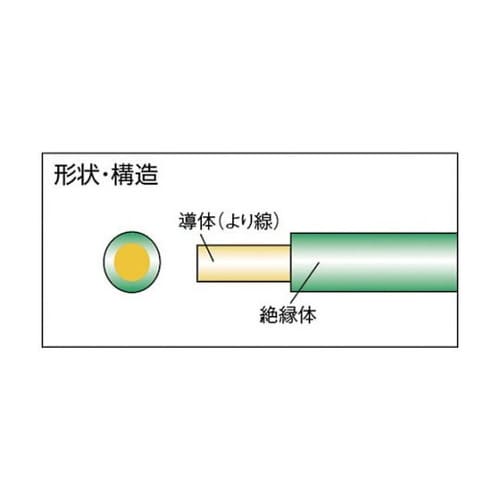 主に室内で使用する交流300V以下の、小型電気器具に用いる電線で、より線の導体にビニール絶縁を施したものです。(単芯ビニールコード)アース線や、電気器具内のリード線に。 |
