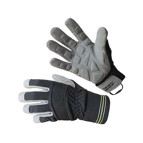 ループ付手の平側に振動を軽減する防振パッドが内蔵されています。手首には面ファスナーを使用し、ガッチリ装着でき、手袋内部への異物混入を軽減します。 |