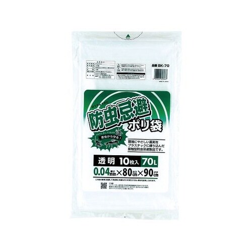 防虫忌避ポリ袋 透明70L 10枚入 BK−70