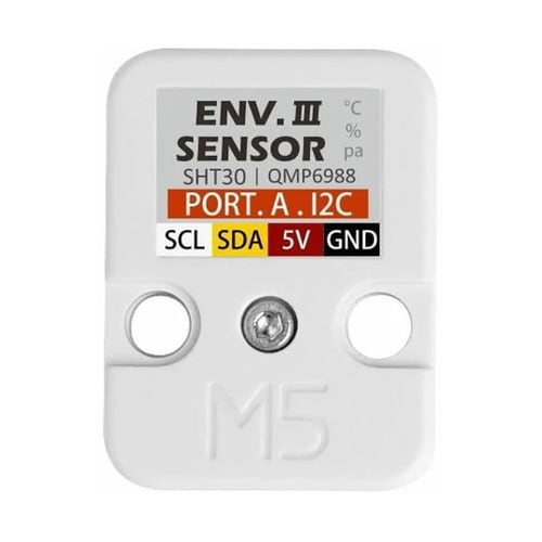 温度/湿度/気圧を測定できるM5Stack用の環境センサ温湿度センサSHT30と気圧センサQMP6988を搭載した高精度で低消費電力のデジタル温湿度センサです。 |