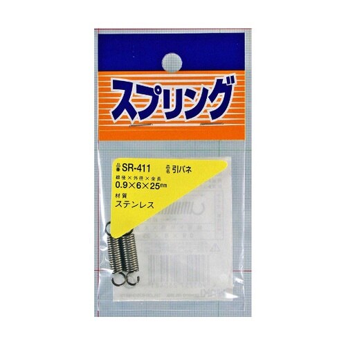 和気産業 ステンレス引きバネ 線径0.9mm×外径6mm×自由長25mm 2個入 SR−411 9396-0229