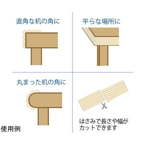 クッション性が高く、ぶつかった時の衝撃をやわらげます。波型形状のため、いろいろな場所に取付けられます。専用両面テープ付きで簡単に取り付けられます。好きな幅や長さにさみで簡単にカットできます。 |