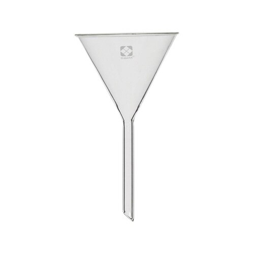 ろうと、じょうごとも言い、小さな口径の容器へ液体などを流し込む際に使う円錐状のガラス器具です。ろ紙を介して液体の自然ろ過にも使用されます。 |