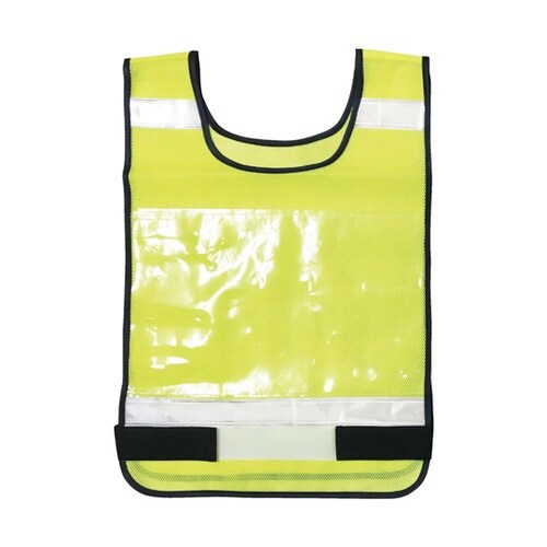 高輝度反射テープで夜間作業でも安心。前後の大型ポケットにA4サイズの用紙を差し込み出来ます。ウエスト部分のマジックテープで、簡単に装着してサイズ調節も可能です。