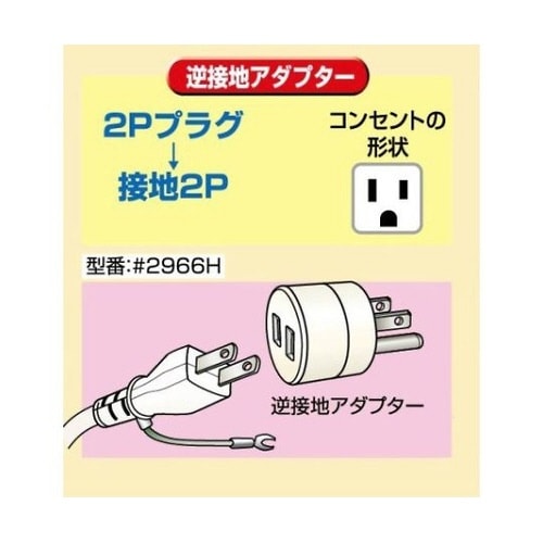 用途:OA器具などの機内回路を保護するために、2Pプラグを接地2Pプラグに変換する場合に使用するアダプターです。 |