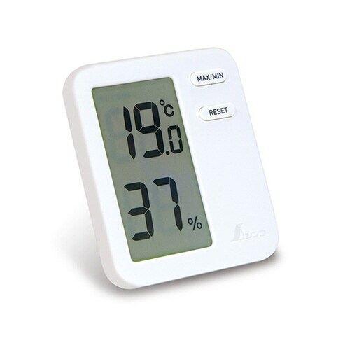 コンパクトでシンプルなデジタル温湿度計です。見やすさ抜群の広い視野角のデジタル温湿度計です。最高温度・湿度、最低温度・湿度の表示切替ができます。 |