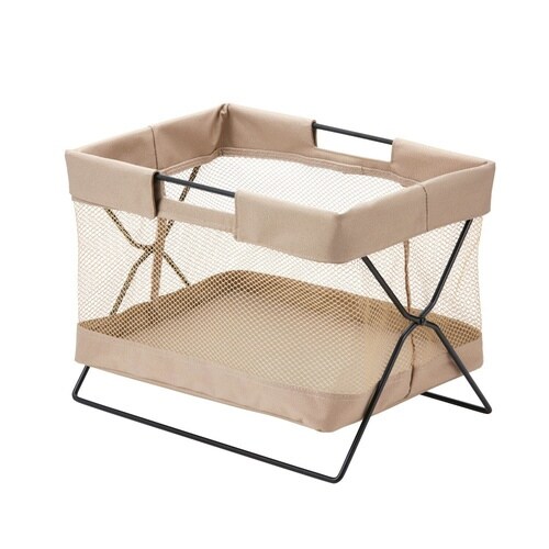 日常的に使いやすい、シンプルな見た目と機能のかばん置き。中身が見えるメッシュ素材で持ち運びに便利な持ち手付き。ミニサイズは、椅子の下にも収納可能です。 |