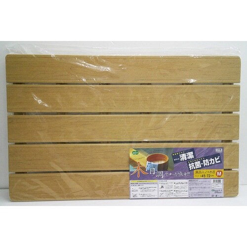 浴室にナチュラルになじむ木目調。 樹脂製だから清潔に使える。 ぬめりをおさえる抗菌・防カビ加工。 裏面にはエラストマーの滑り止め付き |