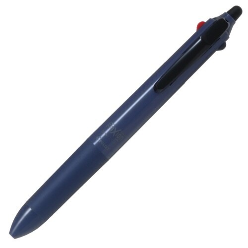 「こすると消える」フリクションインク(黒・赤・青3色)と「消えない」油性インク(黒色)を1本に収めた筆記具です。 |