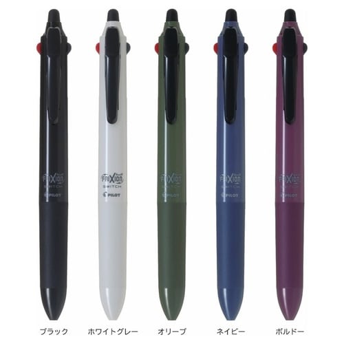 | 注意事項 | ※黒・赤・青のスライドレバーの芯はペン上部のラバーでこすると色が消えるフリクションインキです。証書類・宛名など消えてはいけないものに使用しないでください。高温下に置かないでください。フリクションインキは60℃以上になると筆跡が無色になります。感熱紙など紙の種類や、印刷物の特性によっては消去に不向きな場合があります。クリップスライドレバーの芯はこすっても消えない油性インキです。 |