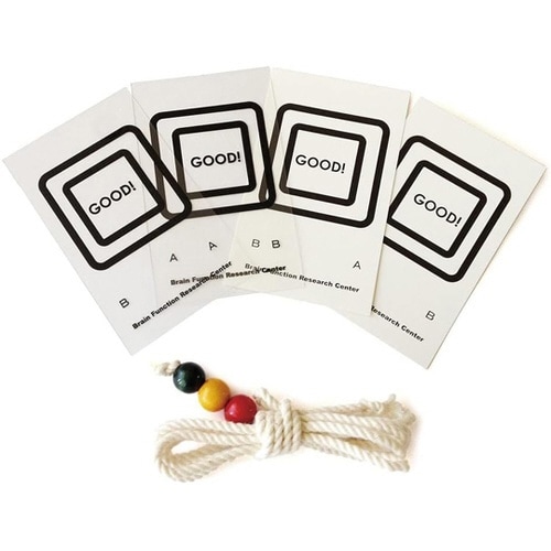 「ブロックストリング」と「両眼視(立体視)トレーニングカード」のセット。ブロックストリング:両目のチームワークを高めるトレーニング。 |
