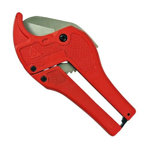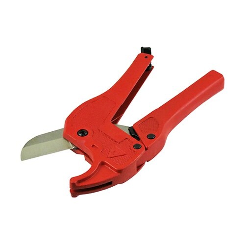 硬質塩ビ管の切断が片手でできます2つのワンタッチ機能▼(1)ハンドルを握りこむとストッパー解除▼(2)ハンドルを開くと刃が最大に開きます。 |