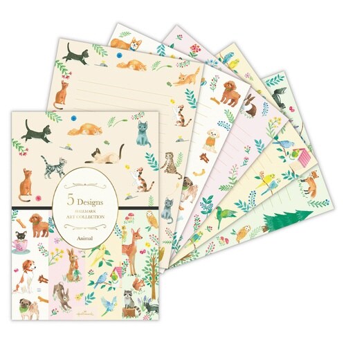 5柄楽しめる! 贅沢な動物柄レターパッド。猫、犬、うさぎ、鳥、森の動物をテーマにした5柄。動物たちのさまざまな仕草や表情がポイントです。 |