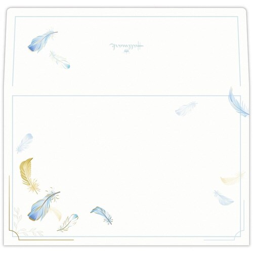 3行で完成! 羽根柄のビジネス向け封筒。手書きの文章を3行加えるだけで、丁寧な手紙が完成する文例付きレター用の封筒です。お相手を問わず贈りやすい羽根のデザイン。 |