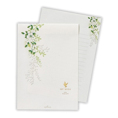 上質なパールシルクとエンボス加工が映えるプレミアムなレターシリーズ「MY WISH」の便箋。パールシルクとエンボス加工を施したこだわりの仕様。 |