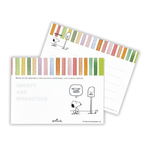 ちょっとしたメッセージはもちろん自身のメモ帳にも最適。小さい便箋として。罫線入りだから文字がきれいに見せられる。元気になれるレインボーカラーのデザインcPeanuts Worldwide LLC |