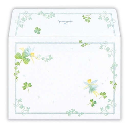 可憐な妖精とクローバー柄のひとことふたこと封筒人気のクローバーモチーフとかわいい妖精たちをあしらったデザイン。ポチ袋としてもお使いいただけます。 |
