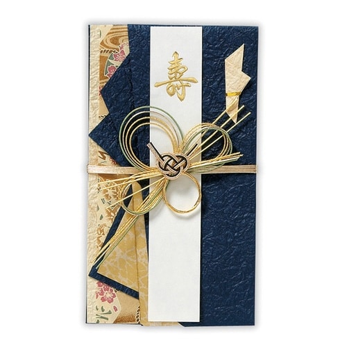 和装婚におすすめの寿祝儀!紺と金のお祝い感のあるデザイン。和紙を使用した上質の祝儀です。 |