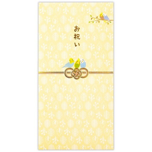 寄り添うインコのキュートな祝儀封筒。お祝い事全般に使える御祝儀用封筒です。明るいイエローがお祝い事にぴったり。 |