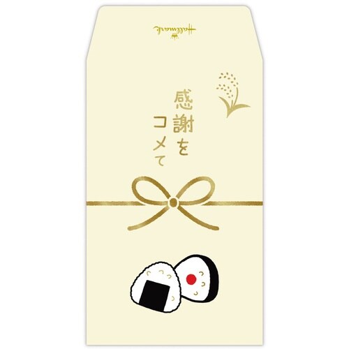 ありがとうの気持ちをコメて…ちょっとしたお礼や心づけなど、お金を渡すシーンに便利なポチ袋。おにぎりの絵柄にちなんだダジャレをさりげなく盛り込んだ、クスッと笑えるデザインです。 |