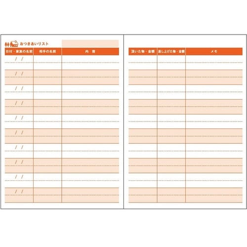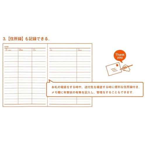 親戚・ご近所・ママ友との贈答をまとめて記録できます。誕生日・記念日リスト、贈答のエチケット、人生の記念日一覧、住所録が付録としてついています。 |